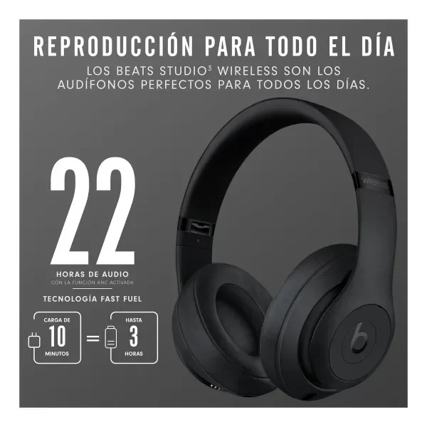 Sumérgete en la música con estos Auriculares Beats Studio³ Wireless en elegante color Matte Black. Diseñados por Apple, estos auriculares over-ear te ofrecen una experiencia de sonido inigualable gracias a su tecnología de cancelación de ruido, que te permite disfrutar de tus canciones favoritas sin distracciones. Con una duración de batería de 22 horas, podrás escuchar música durante todo el día sin preocuparte por cargarlos constantemente. Además, su conexión Bluetooth te brinda la libertad de moverte sin cables, mientras que el micrófono incorporado te permite atender llamadas con facilidad. No esperes más para disfrutar de la calidad y comodidad que los Auriculares Beats Studio³ Wireless tienen para ofrecerte.