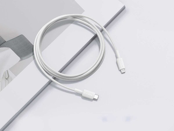 Cable Para Iphone Anker Tipo C Lightning trenzado, reforzado, certificado de carga rápida de 2m en color Blanco